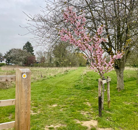 I suggest you put on a coat this morning if you’re out walking in West Oxfordshire. It’s not freezing, but there’s a damp chill in the air and you can always shrug the coat off and tie it round your waist if you get up some speed and heat later. You don’t come to the Writing Path for style advice, but I do feel qualified to comment on the painful fashion world that is dressing for April in the UK. Always add a layer, is my top tip for the chic rambler. If you had already planned to wear a jacket, think about a cardigan underneath. If you have the full complement of outerwear, consider a vest. If you were wondering whether you could go out without headwear now that we’re into the new financial year, reevaluate and maybe spend some of your new budget on a bobble hat in spring colours.