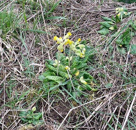 I checked, and the cowslips are indeed earlier this year, and were earlier last year than the previous one. Take the beginning of April as your opportunity to start a nature diary. You can do this even if you don’t live in the middle of nowhere, like me. Most windows reveal a patch of nature, each street corner has something wild about it if you look closely enough. Note one thing you spot each day. If you like, use your one thing as a prompt for writing a short poem or passage.